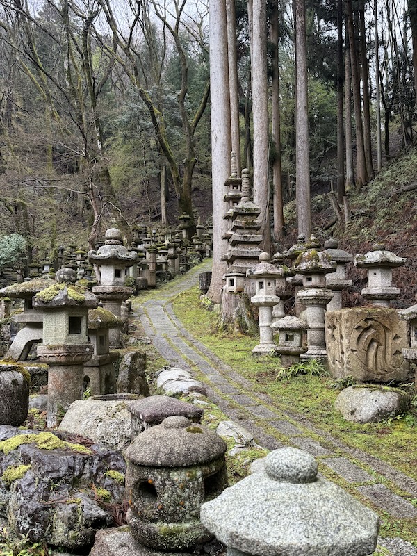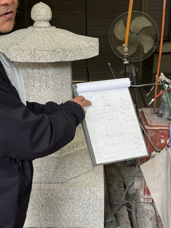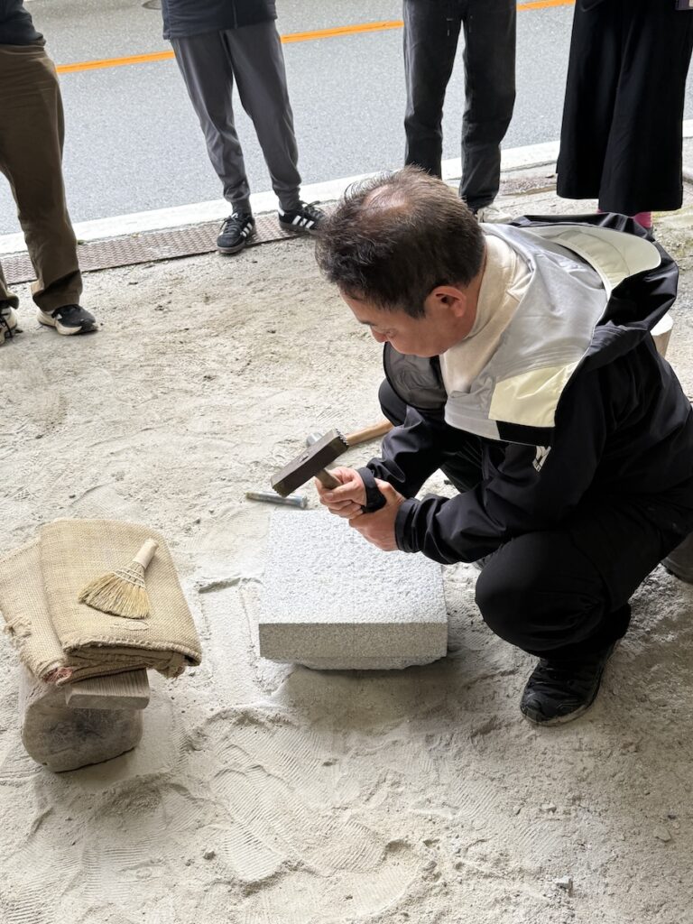 This Tuesday, we visited the Nishimura Stone Lantern Workshop run by the fifth-generation head Nishimura Daizo. In Japanese culture, stone objects are believed to carry a kind of spirit in gardens or sacred spaces. Unlike other stone lantern workshops in Japan, Mr. Nishimura’s workshop makes its lanterns almost entirely by hand, so a single lantern production would take an artisan three months to finish. Mr. Nishimura showed us the whole process of creating a sketch of the stone lantern, calculating measurements, carving the rough form, and shaping the surface with finer tools. After a lantern is made, they would leave it in the outdoor storage in the mountains, where the lanterns would rest for three to five years for moss to grow across the surface. This aging process reflects the Japanese aesthetic of imperfection and integration of nature, which allows the stone lantern to blend into Zen gardens.