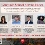 Tuesday April 28 at 4:30-5:30pm, Fries Center for Global Studies, Fisk 201 Are you interested in pursuing a graduate degree outside the United States? Do you want to learn about funding options that could help you do it? Join us in person or online to hear from Wes students and alumni! We will talk about…
